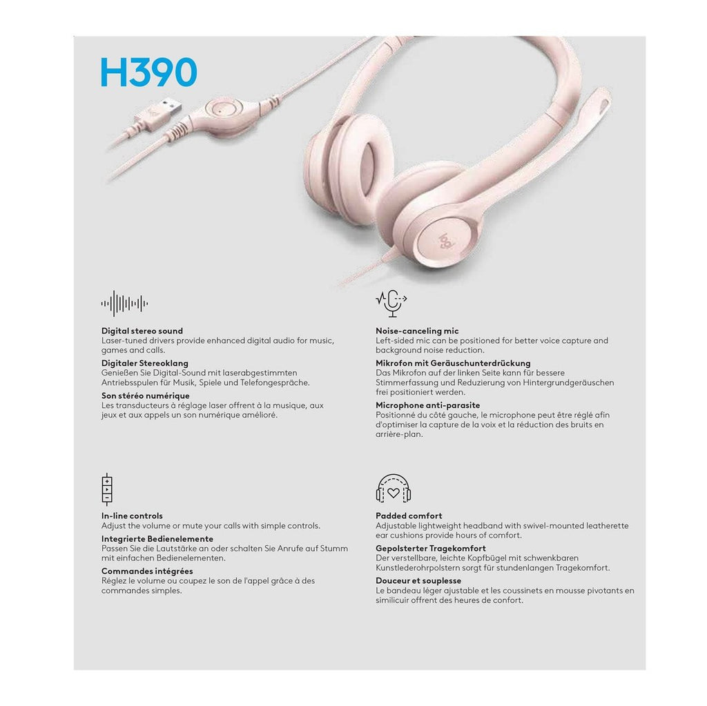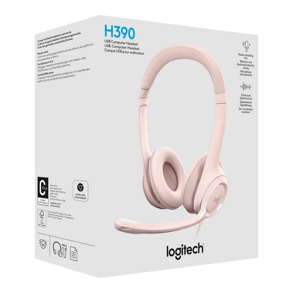 Logitech H390 USB Headset with Noise-Canceling Mic - Rose, Retail Box , 1 year Limit warranty