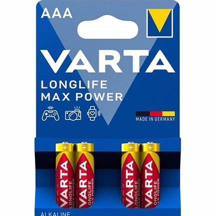Varta Long Life Max Power AAA battery delivers reliable, long-lasting alkaline power at 1.5V for everyday devices. Designed for high performance in remote controls, clocks, and small electronics. Trusted brand quality ensures consistent and durable energy supply.