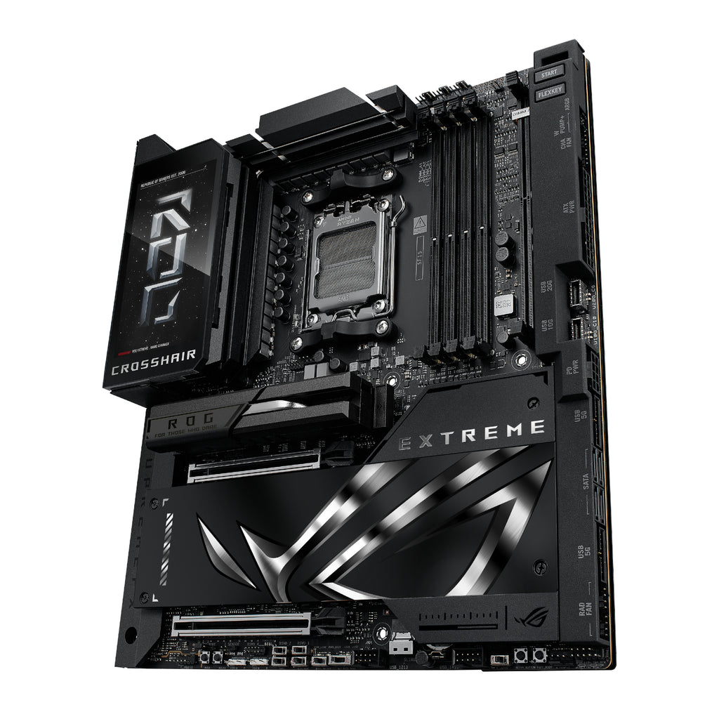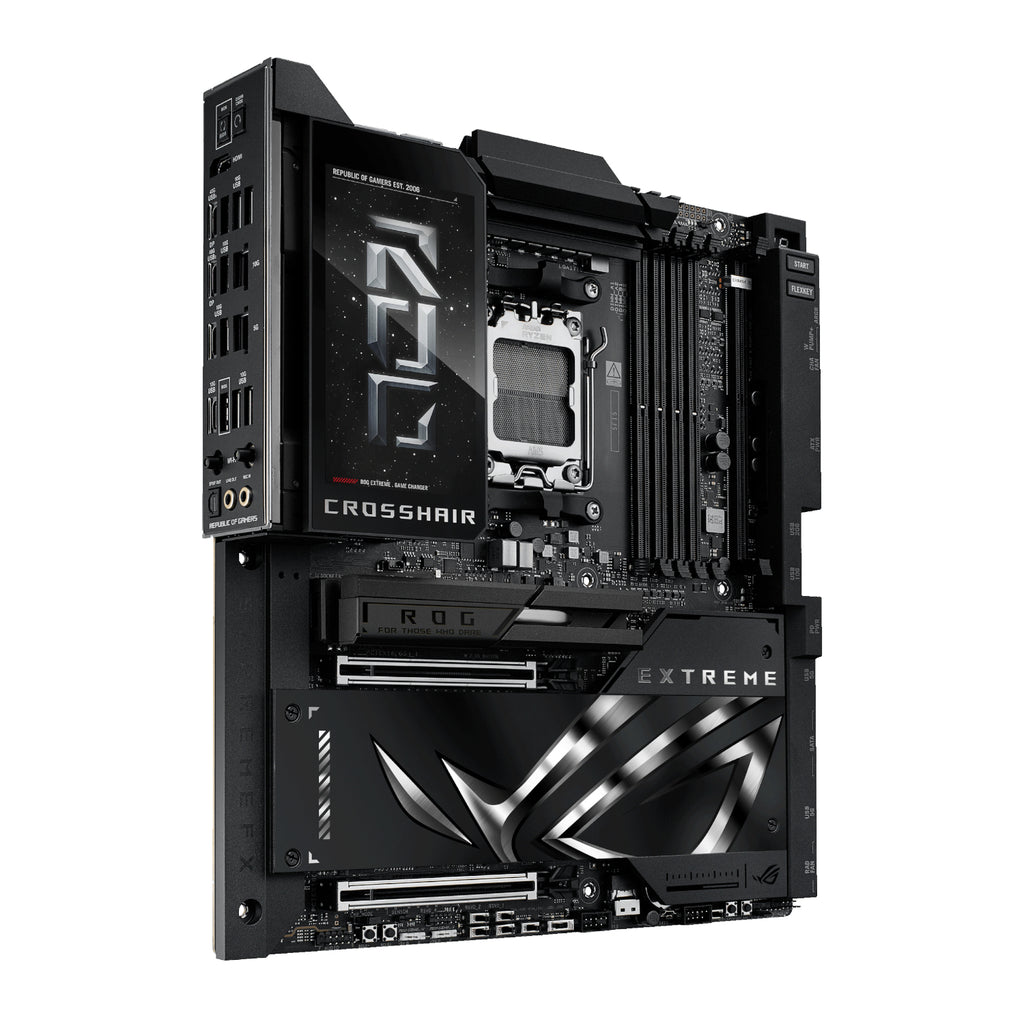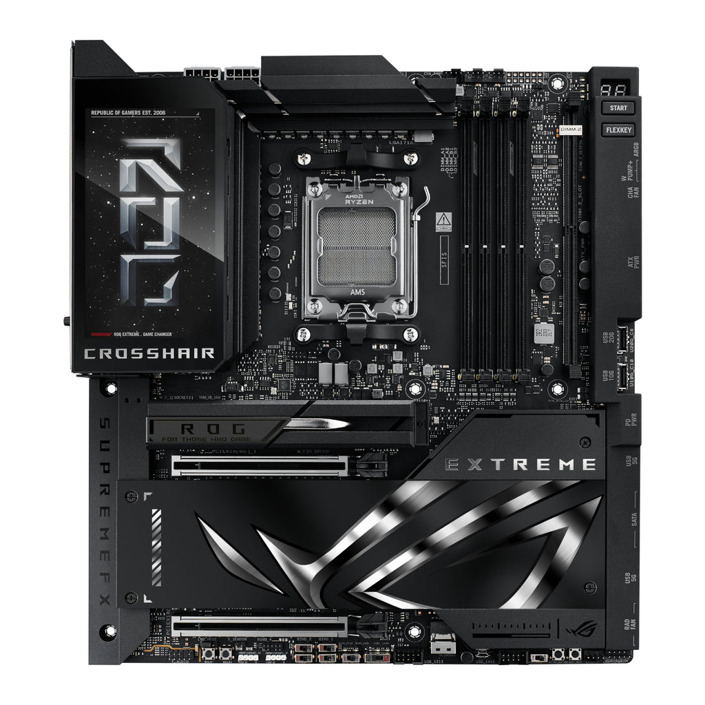 The ASUS ROG Crosshair X870E EXTREME is the premier AM5 motherboard, designed for gamers and enthusiasts who demand peak performance and cutting-edge technology. Supporting AMD Ryzen 9000, 8000, and 7000 Series desktop processors, this gaming motherboard provides a robust foundation for your dream gaming PC. Experience unparalleled speed, connectivity, and customisation options to take your gaming to the next level.