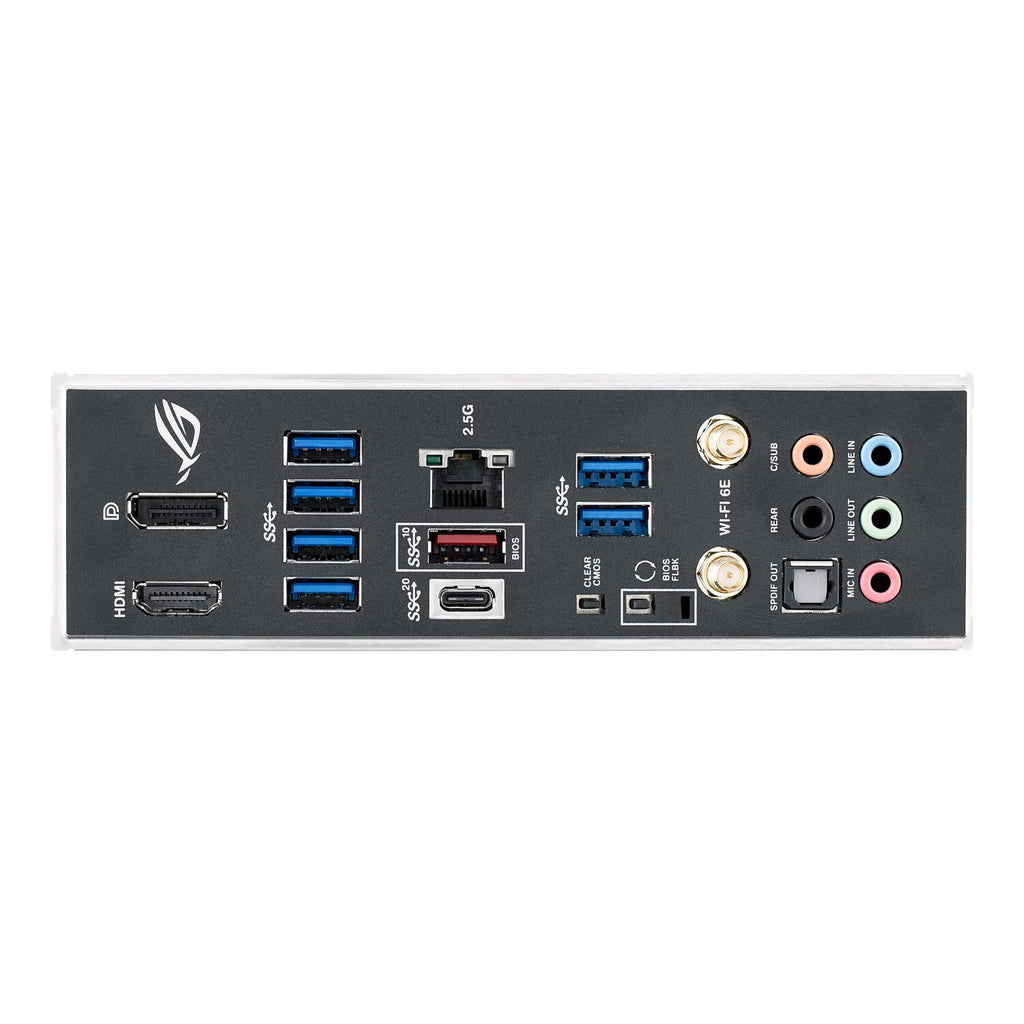 Enhanced cooling is assured via large VRM heatsinks, hybrid fan headers, and M.2 heatsinks that maintain system stability during high-load operations. Advanced connectivity includes rear USB 3.2 Gen 2x2 Type-C®, front USB Type-C®, and HDMI® 2.1 and DisplayPort 1.4 outputs for modern displays. The ROG Strix B760-F Gaming also incorporates intuitive features like Q-LED diagnostic indicators, BIOS FlashBack™, and a pre-mounted I/O shield for streamlined assembly and maintenance.