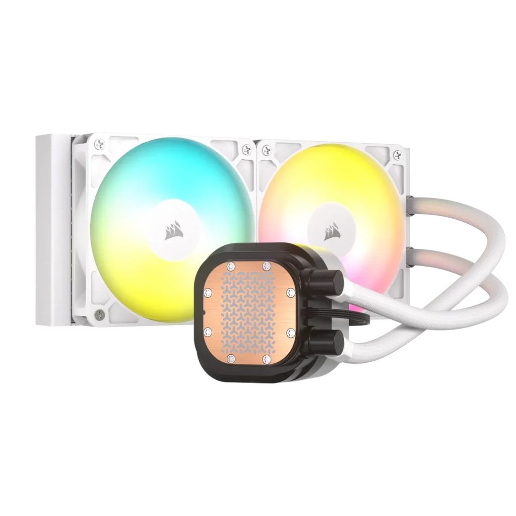 Corsair NAUTILUS 240 RS ARGB Liquid. Type: Air cooler, Rotational speed (max): 2100 RPM, Noise level (high speed): 34 dB, Maximum airflow: 74.37 cfm, Maximum air pressure: 4.91 mmH2O. Width: 125 mm, Depth: 275 mm, Height: 125 mm. Product colour: White