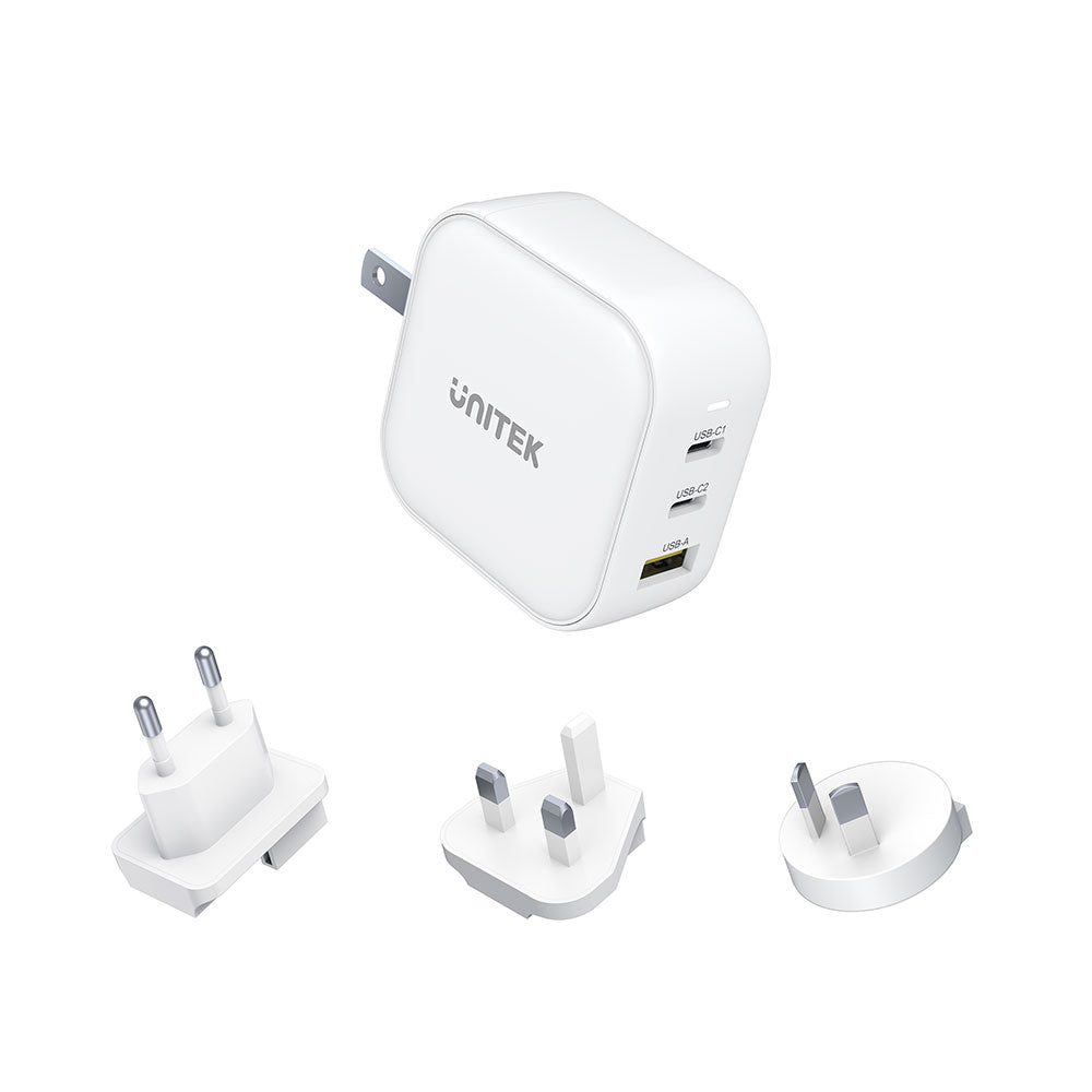 Unitek 66W 3-Port USB GaN Travel Charger (US, EU, UK, AU) with PD And QC3.0 (P1108A)