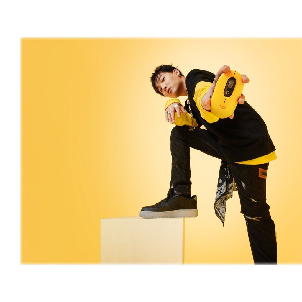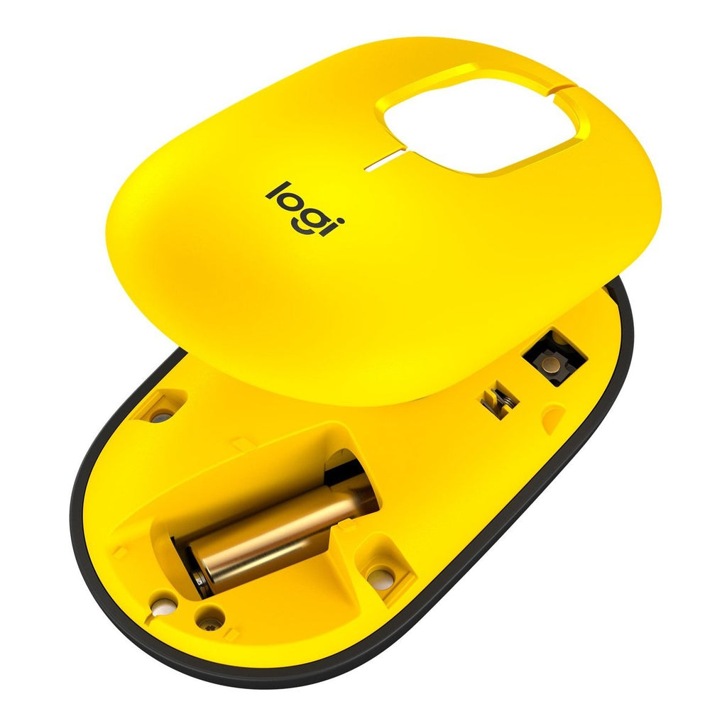 Logitech POP Silent Wireless Mouse Yellow - is a vibrant 4-button Bluetooth wireless mouse featuring high-precision optical tracking with up to 4000 DPI sensitivity. It offers silent clicks via SilentTouch switches, supports connection to up to three devices, and includes a customizable emoji top button for personal flair. Powered by a single AA battery with up to 24 months of life, it is compatible with Logitech Bolt and managed through Logitech Options software, backed by a 2-year warranty.