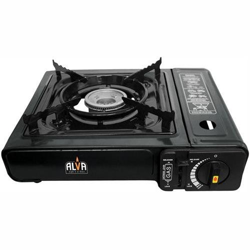 Alva Single Burner Butane Canister Gas Stove- Cast Aluminium Burner Variable Heat Control Safety Locking Mechanism Enamelled Pot Holders Convenient Carry Case Uses CCR100 Gas Canister 1 Year Warranty
