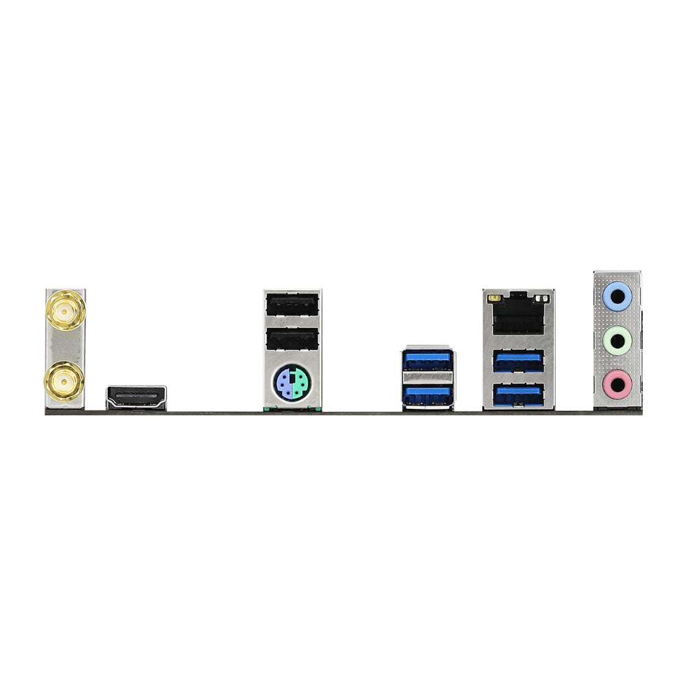 Storage options include 4 SATA3 ports and 1 Hyper M.2 slot (PCIe Gen4 x4) for ultra-fast NVMe SSDs, providing ample room for high-speed storage. Onboard connectivity includes 8 USB 3.2 Gen1 ports (4 rear, support for 4 in front) and 6 USB 2.0 ports (2 rear, support for 4 in front) for external devices. With Realtek Gigabit LAN, Intel® 802.11ac Wi-Fi, and Bluetooth 4.2, it ensures seamless network connectivity for gaming, streaming, and productivity.