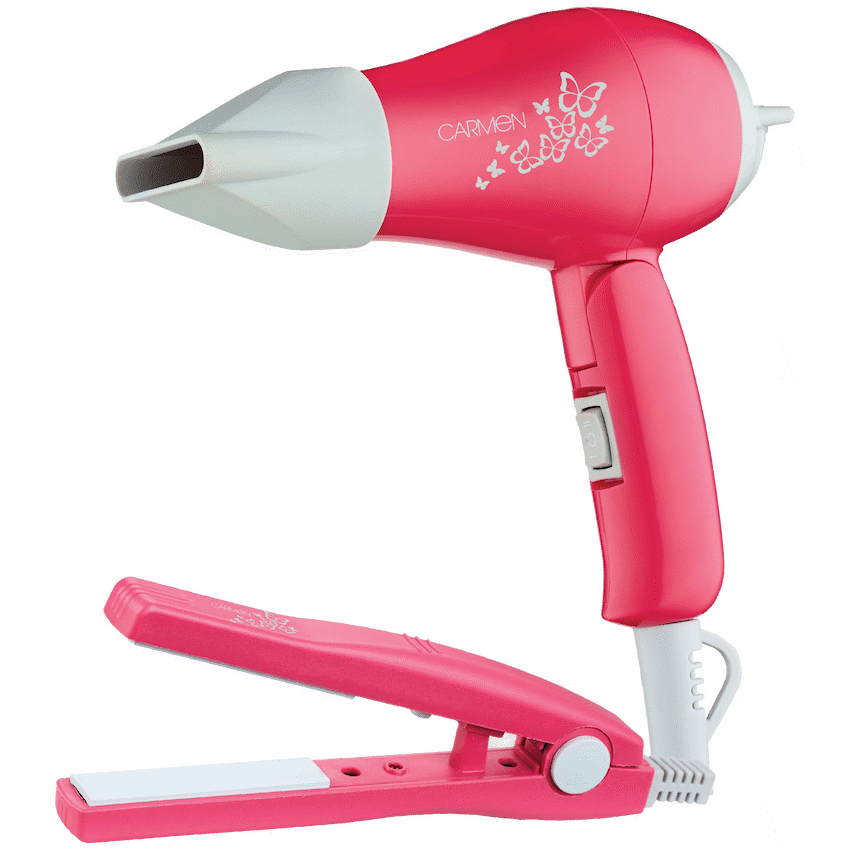 Stay styled wherever the night takes you with the CARMEN Girls' Night Out Hair Dryer. Compact and foldable, it fits perfectly in your travel bag. With two heat settings, a narrow styling nozzle, and an easy ON/OFF switch, it's the perfect companion for quick touch-ups and flawless finishes.Foldable Handle for space-saving travelNarrow Styling Nozzle for targeted drying2 Heat Settings for flexible controlON/OFF Switch for simple useHanging Loop for convenient storage