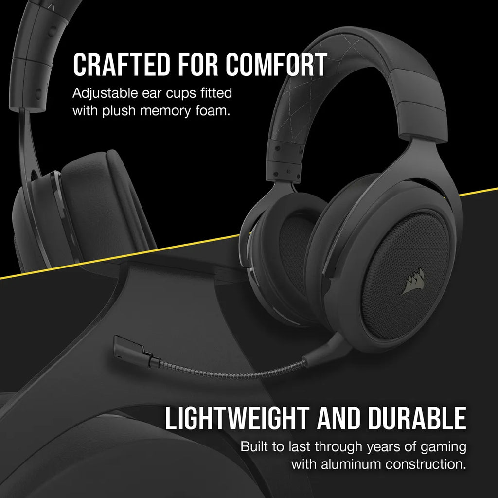 Corsair HS70 PRO Wireless. Product type: Headset, Wearing style: Head-band, Recommended usage: Gaming. Connectivity technology: Wireless, Frequency band: 2.4 GHz, Wireless range: 12 m. Ear coupling: Circumaural, Headphone frequency: 20 - 20000 Hz, Impedance: 32 Ω. Microphone frequency: 100 - 10000 Hz, Microphone sensitivity: -40 dB, Microphone input impedance: 2000 Ω. Control type: Buttons,Rotary