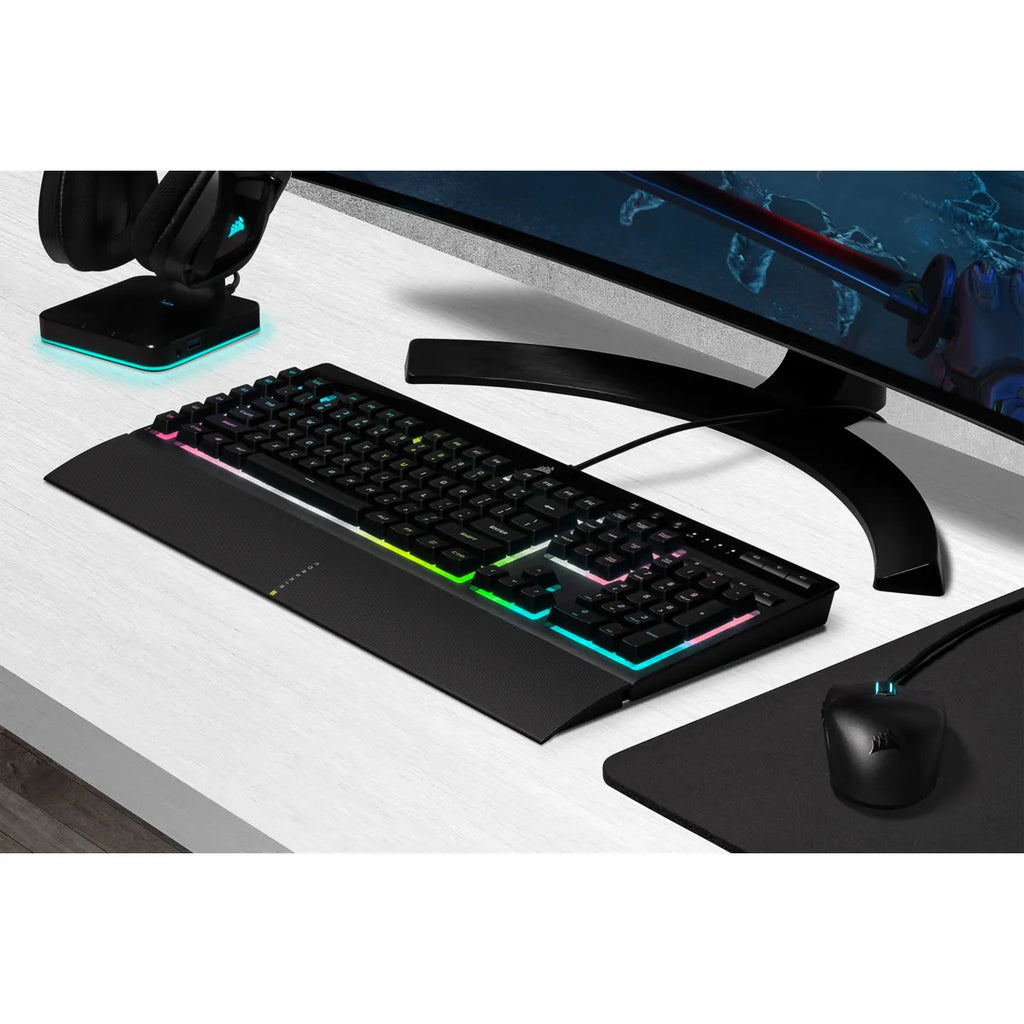 Corsair K55 RGB PRO XT. Keyboard form factor: Full-size. Keyboard style: Straight. Device interface: USB, Keyboard layout: QWERTY, Keyboard number of keys: 111. Backlight type: RGB LED, Wrist rest. Recommended usage: Gaming. Product colour: Black