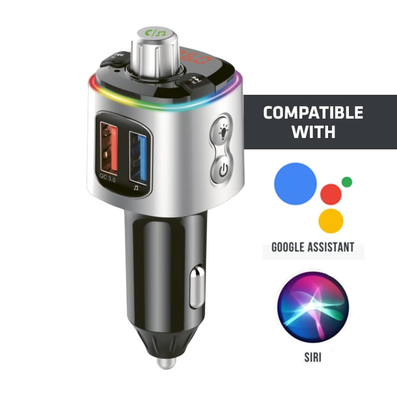 The Gizzu Bluetooth Piston Handsfree FM Transmitter & Dual USB Car Charger features a discrete minimalist Piston shaped design. This device enables you to make and receive calls or listen to music hands-free when travelling in your car. Thanks to the latest wireless technology, you can now connect two devices to the Gizzu Handsfree Kit simultaneously. Charge your devices thanks to dual USB ports, with one port featuring Qualcomm® 3.0 Quick Charge technology. The intuitive control panel on top is easy to use, simply tap and hold to play, pause, enter handsfree, or redial. Tap and hold the button to enter Siri. Or simply rotate the knob left to increase volume and rotate right to increase volume.