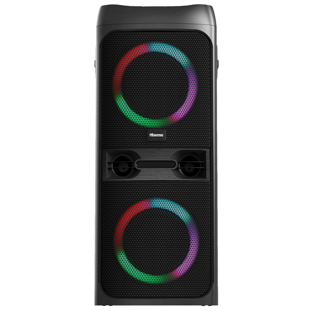 Hisense HP300 DJ Party Speaker - 2 Channel Speaker, 2 Internal Subwoofer, 2 Tweeters, 400W Max Audio Power (200W RMS x 2) , 40Hz - 20KHz Frequency Response, Display Screen, Sound EQ Mode, Bass Boost, DJ Effect, Vocal Fader, MP3, Bluetooth 5.0, Aux Input, Mic Input, USB Input, Recording, Power Socket, RGB Light Effect, TWS, Echo Volume, Guitar Volume, 280W Power Consumption, Retail Box, 1 Year Warranty.