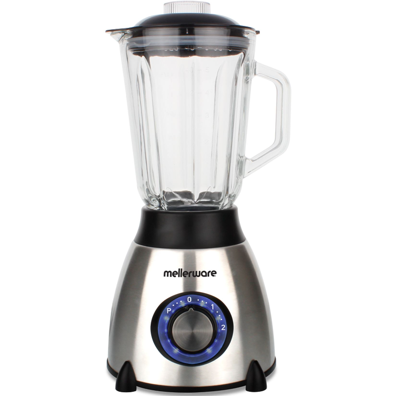The Mellerware Optima Blender features a powerful 550W motor with 2-speed settings and a pulse function for versatile blending. Its stainless steel blade system and 1.5L glass jar make it perfect for crushing ice and creating smooth drinks. Comes with a stylish stainless steel body, LED light, and a convenient coffee mill attachment.