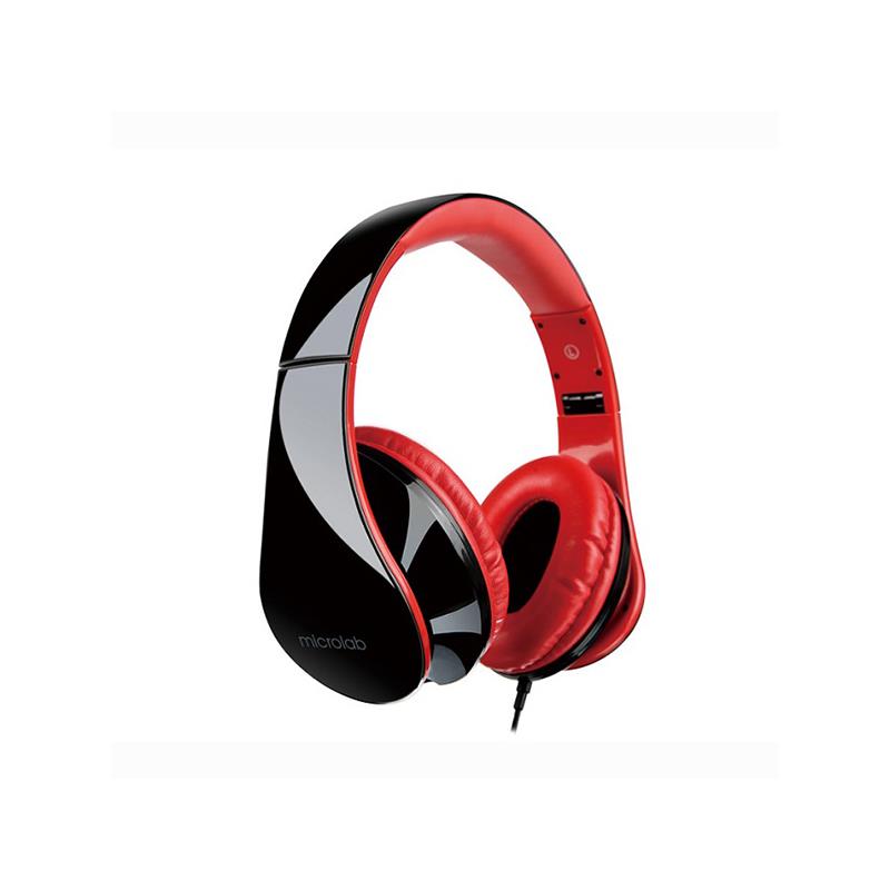 Microlab K360 Foldable Lightweight Headset With Line-In Microphone, 2X Stereo 40mm Drivers And 50mW(max.) Input Power - Black/Red Colour