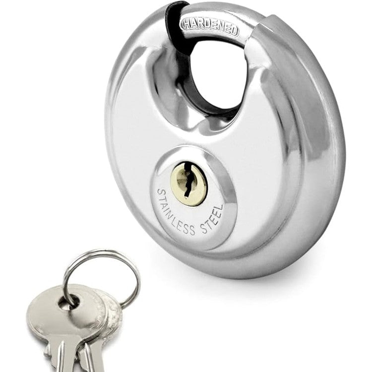 Noble Stainless Steel Disc Padlock - 60mm Padlock Size, Stainless Steel Armor Outer Shell, Weatherproof, Rustproof, Waterproof, Fits Most Storefront Gate Receptacles, 2 Keys Included, 1 Month Warranty