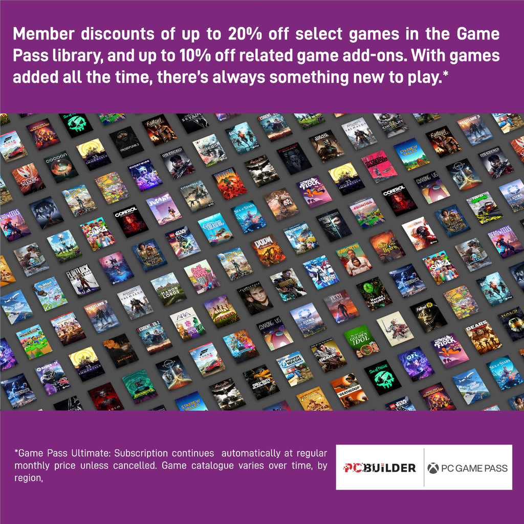 The PCBuilder TACTICIAN Windows 11 Gaming PC also includes one month of PC Game Pass including EA Play. Play over 100 high-quality PC games, in various genres such as Halo Infinite, Forza Horizon 5, and Minecraft on your new gaming rig. With new games added all the time, there’s always something new to play from day one.