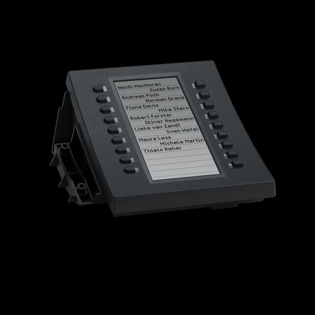 The D3 Expansion Module provides an elegant way to increase the available function keys on D3xx telephones, allowing users to manage a large number of extensions and calls. 18 highly configurable self-labeling multicolor LED keys High-resolution black & white display with backlight Daisy-chain up to 3 modules Plug and play Power supplied by phone via USB port