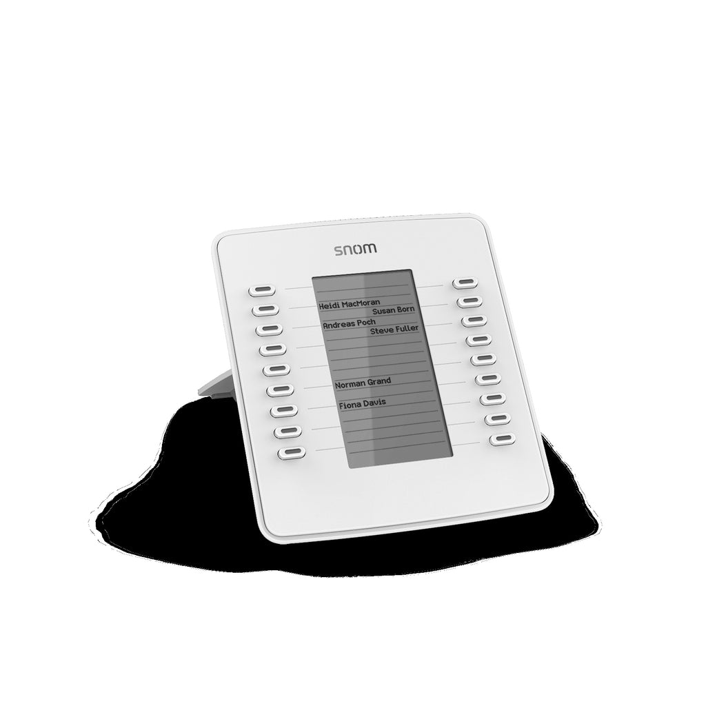 The D7 expansion module features 18 multicolor LED keys which can be programmed with all functions available known to Snom phones like line, speed dial, busy lamp field, presence indication, and many more. 18 highly configurable self-labeling LED keys High-resolution black & white display with backlight Daisy chain up to 3 modules Plug and play Power supplied by phone via USB port
