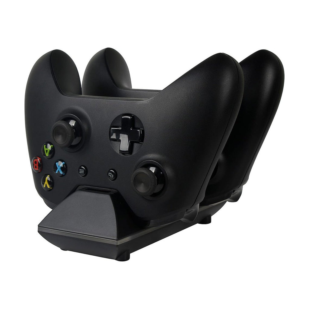 Conveniently store and charge two Xbox One Wireless Controllers with the Sparkfox Dual Charging Dock. The Charge Base comes with two rechargeable batteries that feature special contact points allowing for an easy drop-in and charge power solution for your wireless controllers. The dual port recharging dock plugs into any standard outlet, requiring no cables back to the console.