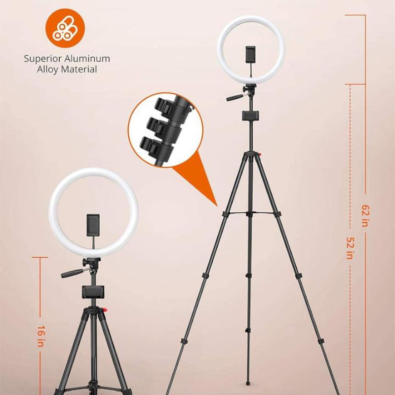 TaoTronics has included a stable aluminium alloy tripod that is extendable from 16" (40.6cm) to 52" (132cm) and can be locked in place to your desired length. The tripod’s head can be rotated 360° and can be used for the ring light or your camera. This head allows you to vertically turn the ring light 90° and horizontally 180°, to get the perfect illumination angle.