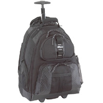 TARGUS - SPORT ROLLING 15 -15.6IN LAPTOP BACKPACK BLACK PROTECTIVE PVC MATERIAL ON BOTTOM OF CASE REPELS WATER, PADDED HANDLE AND SHOULDER STRAPS, STORAGE OPTIONS THROUGHOUT THE BACKPACK