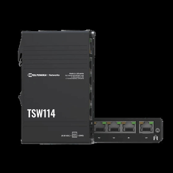 The Teltonika Industrial 5 port Gigabit Switch, Supports auto MDI/MDIX crossover - Unmanaged (10Gbps) 9-30 VDC Passive PSU/POE Input, DIN rail or wall mountable, No PSU Included.