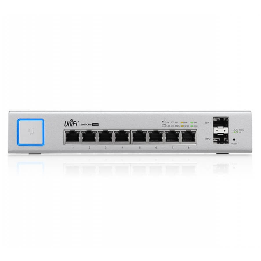 8 Gigabit RJ45 Ports 2 SFP Ports Non-Blocking Throughput: 10 Gbps Switching Capacity: 20 Gbps Forwarding Rate: 14.88 Mpps Maximum Power Consumption: 150W Supports PoE+ IEEE 802.3at/af and 24V Passive PoE Quiet, Fanless Operation Desktop-Mountable (Do not physically stack the US-8-150W).