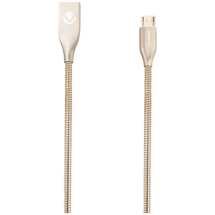 Volkano Iron Series Round Metallic Spring Micro USB Cable 1.2m - Champagne Gold